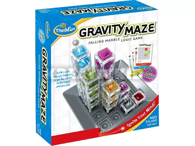 A Gravity Maze a gravitáció elvén alapuló golyóvezető játék, amelyben több fokozatú feladatkártyák rejtvényeit oldhatjuk meg. A készlet jól ötvözi az egyszemélyes logikai játékot az építkezős kiadványokkal, ráadásul minden jó megoldás szórakoztató golyógurítós szerkezetet eredményez.