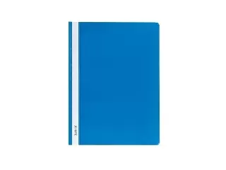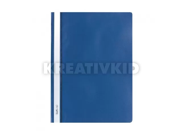 A4-es méretű iratok lefűzésére alkalmas PP gyorsfűző, feliratozható gerinccel, átlátszó fedlappal, színes hátlappal, kék színben.