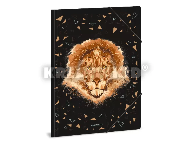 A/4 méretű gumis dosszié iratok, füzetek tárolására. 350 gr-os vastag kartonból készült dosszié lekerekített első sarkokkal, színes gumi zárópánttal. Külseje négy színnel, fényes fóliával nyomott. Belső oldala nyomatlan.