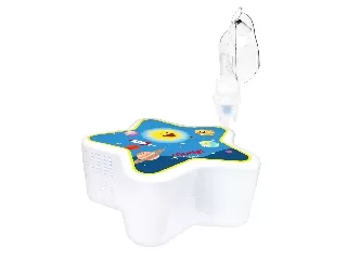 Kompresszoros inhalátor kedves, gyermek barát formával A nagy teljesítményű kompresszor a folyékony gyógyszert vagy sóoldatot apró szemcsékké porlaszt...