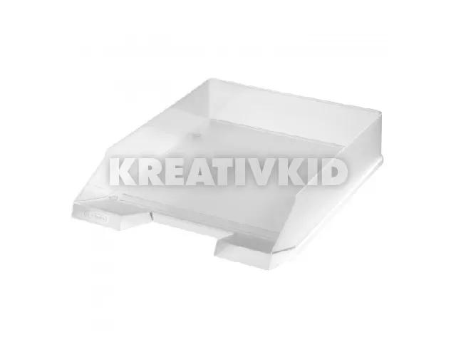 A4-es iratok rendszerezéséhez műanyag irattartó tálca Classic, középen kivágott szögletes fogórésszel. Használható önállóan, de egymásba illesztve és lépcsőzetesen eltolva is. Átlátszó matt kivitelben.