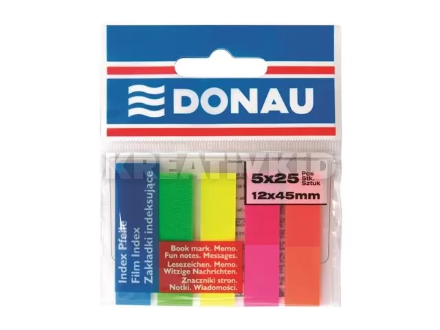 Jelölőcímke, műanyag, 5x25 lap, 12x45 mm, DONAU, neon szín