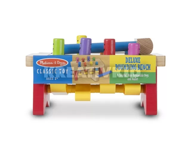 Készségfejlesztő játék kicsiknek a Melissa&Doug-tól! A népszerű kalapálós játékot mindenki ismeri. Egyszerű és nagyszerű! A csöppségek feladata, hogy a kalapács segítségével a vidám, színes farudacskákat (szegeket) lecsapkodják. Azonban amikor egyet eltalálnak egy másik bukkan fel valahol az asztalon, így a játék végetnemérős. Azontúl, hogy szórakoztató és leköti a gyerekek érdeklődését, fejleszti kézügyességüket, szem-kéz koordinációjukat és koncentrációs készségüket is.