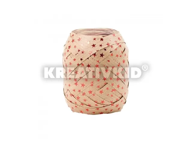 Karácsonyi jumbó tojáskötöző Space, 12 m x 10 mm, barna alapon piros csillagokkal