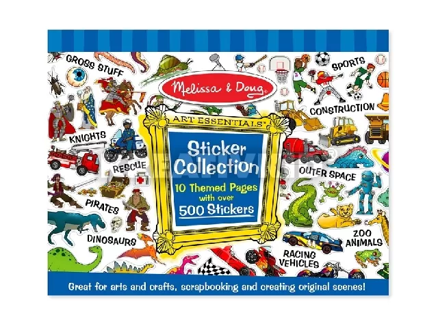 M&D - Kreatív játék - Matricagyűjtő füzet 500 matricával - Dinó, járművek, univerzum szett a következőket tartalmazza: