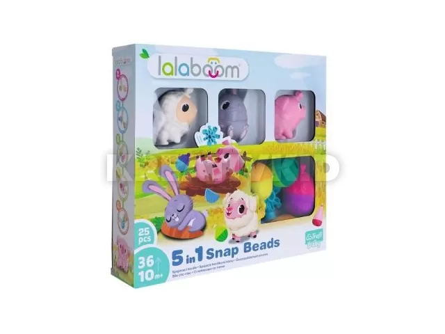 Lalaboom: Montessori bébi fejlesztőjáték - 25 részes. A szett a Montessori-elvekre épít. Az elemek könnyen összepattinthatók, összecsavarhatók, tetszőlegesen kombinálhatók, felületük különböző textúrájú. A golyók fűzhetők, így a kicsik taktilis érzékelése, finommotorikája és szem-kéz koordinációja mellett a gyerekek kreativitása is fejlődik. 10 hónapos kortól ajánljuk.