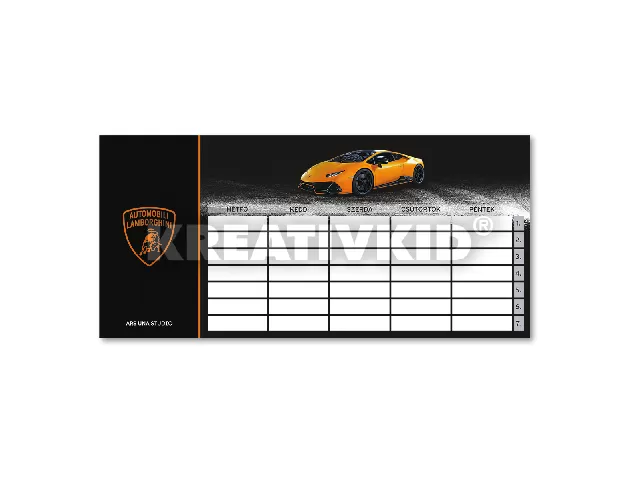 Kétoldalas, magyar nyelvű órarend A és B hét beosztással. 250 gr-os félfényes műnyomó papírra, 4 szín nyomással nyomott.