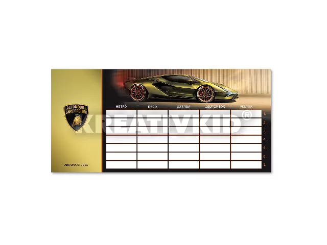 Kétoldalas, magyar nyelvű órarend A és B hét beosztással. 250 gr-os félfényes műnyomó papírra, 4 szín nyomással nyomott.