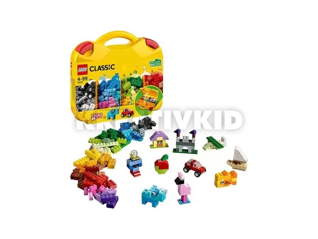 Alkoss színes építményeket LEGO® Classic építőelemekből! A LEGO® Classic Kreatív játékbőrönd 10713 egy műanyagból készült sárga táska, telis-tele változatos LEGO® építőelemekkel. A változatos építőkockák mellett szemeket, kerekeket, ajtót és ablakot is találsz, hogy mit alkotsz belőlük, a lehetőségek száma szinte végtelen! A LEGO® Classic Kreatív játékbőrönd 10713 csomag LEGO® minifigurát nem tartalmaz, viszont Bármelyik LEGO® készlettel együtt tudod használni. A LEGO® Classic Kreatív játékbőrönd 10713 dobozának mérete: 28 x 6 x 26 cm. A csomag 213 darab LEGO® építőelemet tartalmaz.