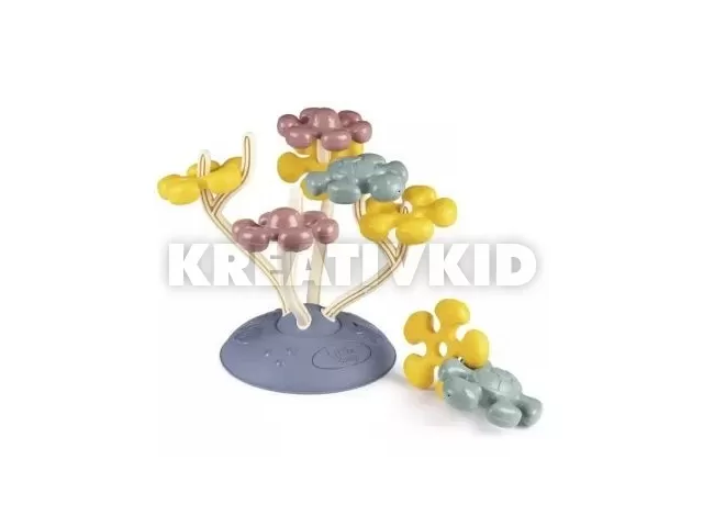Little Smoby: Korallépítő bébijáték 8 db építőelemmel (virág, polip és teknős minta), valamint egy alaplappal, amelynek ágaira ráfűzhetők az elemek.