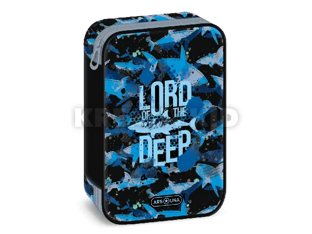 Többszintes, töltetlen, cipzáras tolltartó. Belül textillel bevont merev lapokkal, gumis kialakítással 30 ceruza számára az írószerek tárolásához és egy cipzáras belső zsebbel.