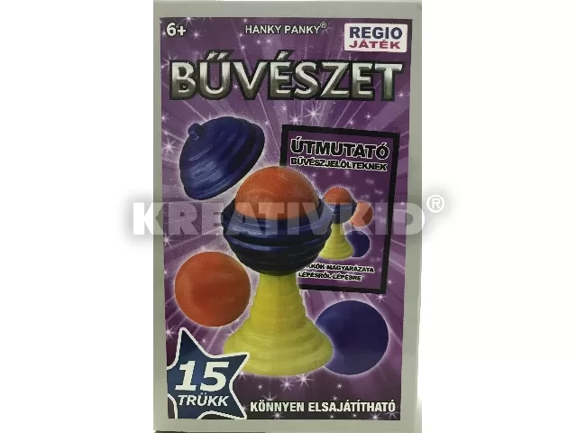 Bűvészkészlet 15 db trükkel a Regio kínálatából. A sorozat 1. terméke a golyó és váza trükköket tartalmazza.