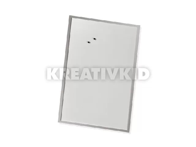 60x80 cm-es fehér felületű, mágneses fém tábla, ezüst színű fa kerettel, 2 db mágnessel és 1 db stifttel