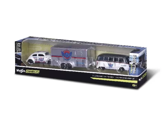 Verseny és garázs témájú 3 darabos csomag, amely 2 járművet és egy zárt autóutánfutót tartalmaz. A versenyzés által ihletett festmények és valódi márkák hitelesebbé teszik ezt a fantasztikus csapatszállítót.