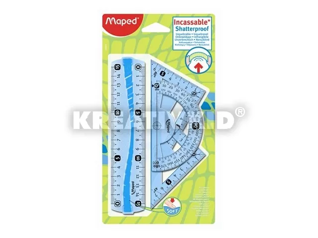 A hagyományostól eltérő szett abban más, hogy a vonalzók mindegyike 100%-osan törésmentes. Strapabíró, hajlítható, a gyerekek nem törik össze könnyedén.