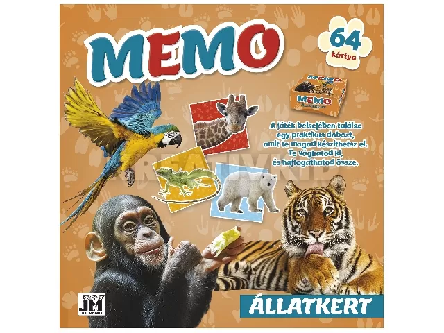 64 kártya található a könyvben, 4 színező oldal. Illetve a könyv végében egy kivágható doboz forma, amit gyermeke kivág, megragaszt, s a kártyákat bele tudja tenni. A memória kártyákat így biztonságosan tudják magukkal vinni például kirándulásra.