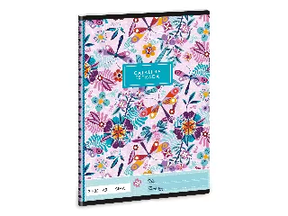 A/5-ös méretű vonalas füzet, 4. osztálytól használható szabványos vonalazású. 32 lapos, belseje 75 gr-os papírból. Borítója 250 gr-os műnyomó kartonra lekerekített sarkokkal, fényes fóliázással, 4 szín nyomással készült.