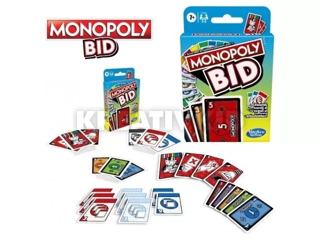 Az új, gyors Monopoly kártyajáték, a Monopoly Bid! Ez a játék ötvözi a klasszikus 'Csata' kártyajátékot a Monopoly ikonikus elemeivel! Ebben a játékban a játékosok egymással versenyezve pénz kártyákkal licitálhatnak az ingatlanokra, hogy megszerezzék az összeset. Akciókártyákat használhatsz az ellenfelekkel szemben, hogy előnyhöz juthass a játék során. Legyél te az első játékos aki megszerzi a 3 ingatlant és megnyeri a játékot! Gyors, egyszerű, szórakoztató a gyerekeknek és az egész családnak!