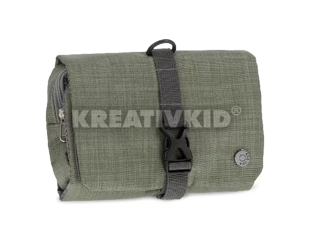 Vízlepergető anyagból készült, összehajtható neszeszer, műanyag akasztóval. Műanyag csattal nyitható-zárható - a csat pántja szabályozható. Három cipzáras rekesszel, melyből a középső rekesz külön is használható.
