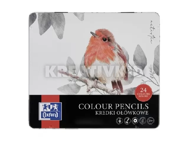 Oxford Art színes ceruza 24 ragyogó színben, 3 mm-es bélvastagsággal, lakkozott fatesttel, fémdobozban. Gyors vázlatkészítésre és finom részletek kidolgozására egyaránt alkalmas. A gazdag és élénk pigmentek és a professzionálisan kiegyensúlyozott árnyalatok tökéletes színkeverést biztosítanak.