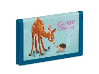 Tépőzáras pénztárca, hátulján cipzáros zsebbel az aprópénznek. Belsejében papírpénz-, valamint bérlet- és kártyatartó rekesszel. Összehajtható. Tartós...