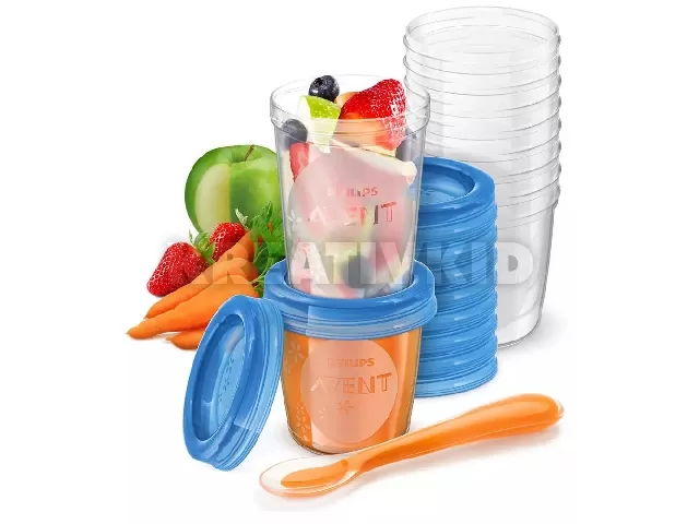 A bébiételek, italok tárolására, szállítására, etetésére.