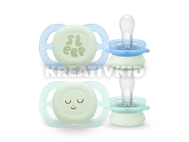 Az elsõ naptól megnyugtatja az újszülötteket. Legmegfelelõbb az illeszkedés, még éjszaka is. A lelki nyugalom biztosított az elsõ naptól újszülött gyermekének megnyugtatásához. A Philips Avent ultra start éjszakai cumi tökéletesen illeszkedik az újszülött gyermek szájához kicsi és könnyû kialakításának köszönhetõen. A sötétben fluoreszkáló kupak segítségével még éjszaka is könnyû megtalálni.