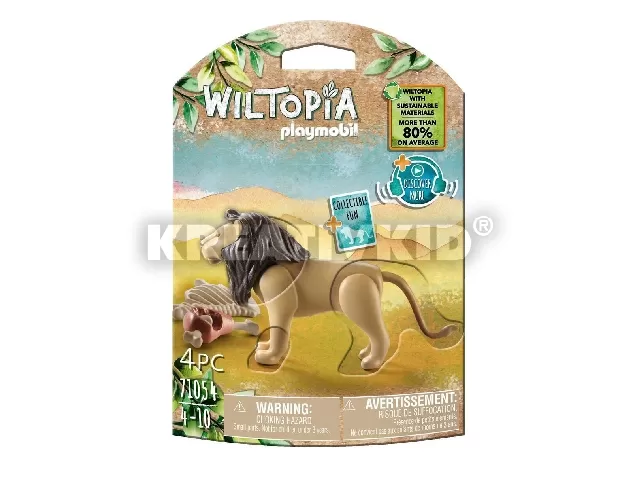 A Playmobil készlet tartalmaz egy oroszlántt, kiegészítőket és egy állatismereti kártyát. Az állatfigura fejét fel-le billentheti, és mind a négy lábát egyenként mozgathatja