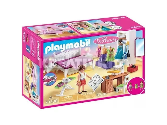 A Playmobil varrószobában gyönyörű ruhákat lehet tervezni, ami varrógéppel elkészíthető utána. A hálószobában megtalálható egy franciaágy, éjjeli lámpák, szekrény, varróasztal, ruhaszárító és egy vasalódeszka is.