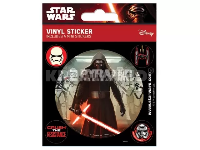 Most szert tehetsz többek között a képen látható matricacsomagra, mely 2 méretben tartalmaz matricákat: 1 db nagy Kylo Rentet ábrázoló- és 4 db kisebb Star Wars VII. évadhoz kapcsolódó matricákat.