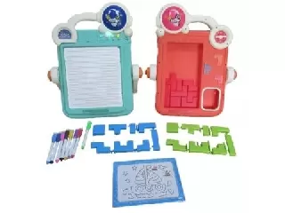 4 az 1-ben rajztábla kiegészítőkkel - 14 db-os. Tartalma: 1 db 3 oldalú rajztábla, 3 db táblafilc (piros, fekete, zöld), 1 db szivacs, 12 db színes kr...