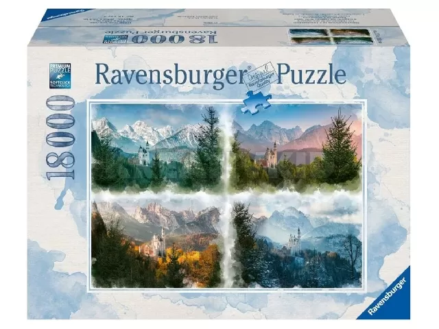A Neuschwanstein kastély - Négy évszak című képen láthatjuk, hogy a világhírű német kastély látványa miként változik a különböző évszakok színeiben. A 200 méter magas sziklagerincen álló középkori lovagvárhoz ma évente több, mint egymillió turista látogat.