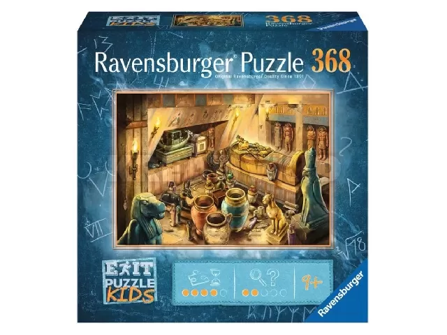 A 368 darabos Ravensburger EXIT puzzle 70 x 50 cm-es méretű. QR kóddal, a tippeket és információkat tartalmazó weboldalra mutató hivatkozással, valamint egy megoldási boríték A népszerű EXIT Room koncepció Ravensburger gyerekrejtvényként! Az EXIT Puzzle Kids segítségével a gyerekek belemerülnek egy izgalmas történetbe, majd a 368 titokzatos puzzle-darabot összeillesztik motívummá.