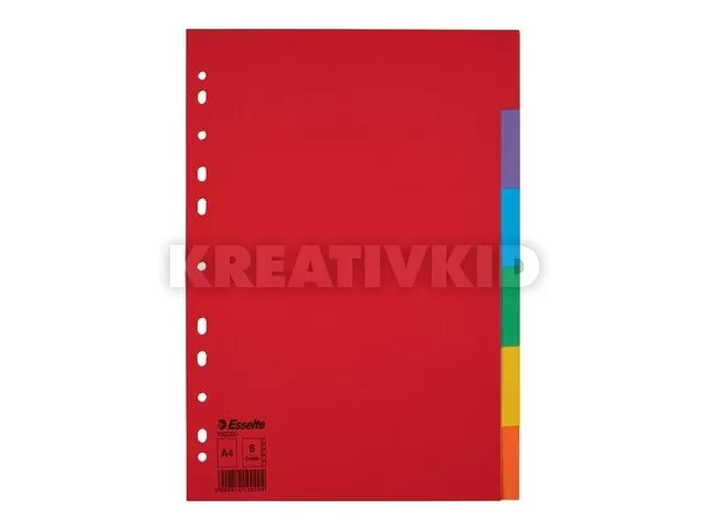 Regiszter, karton, A4, 6 részes, ESSELTE "Economy", színes