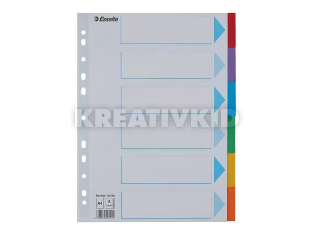 Regiszter, karton, A4, 6 részes, írható előlappal, ESSELTE "Standard", színes