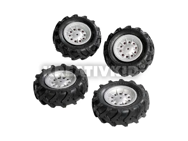 A kerekek 1,5 bar nyomásig fújhatóak. A szett 4 kereket tartalmaz. A kerekek mérete egyenként 31 x 9,5 cm, összsúlya 6,7 kg. A kerekek a Rolly Farmtrac járművekkel kompatibilisek.