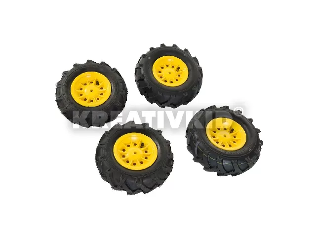 A kerekek 1,5 bar nyomásig fújhatóak. A szett 4 kereket tartalmaz. A kerekek méretei: 2 darab 31 x 9,5 cm, 2 darab 32,5 x 11 cm. A kerekek összsúlya 7,9 kg. A kerekek a Rolly Farmtrac Premium járművekkel kompatibilisek.