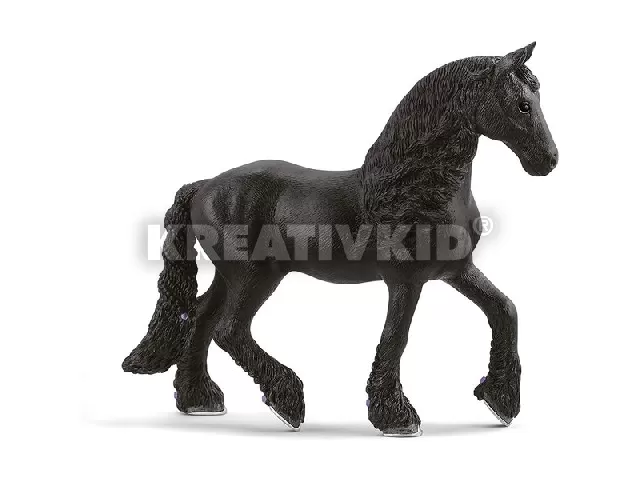A fríz ló hazájáról, a holland Frieslandról kapta a nevét, és Európa egyik legrégebbi lófajtája. Jellegzetes fekete színű szőrzete, pompás sörénye és szép farka van. A fríz lovak másik jellegzetessége a lábukon lévő hosszú szőrzet. A Schleich® Horse Club fríz kancája a lábszárán díszes fonatot visel, ami kuriózummá teszi