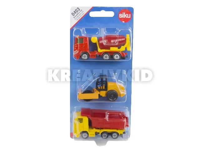 Építési készlet, amely a következőkből áll: Scania R380 (CR16, nappali fülke, közepes hosszúságú, alacsony előretolható vezérlőfülke, 2004-2009 modell) betonkeverő (vö. 0813, 3. változat) + HAMM 3625 HT tömörítő vibráló sima dobbal és HAMMTRONIC (ROPS fülketípus, motor : Deutz BF6M1013EC hathengeres dízel 236,7 LE, tengelytáv 3230 mm, hossz 6355 mm, modell 2000-2007) (úthenger) (vö. 0895) + Scania R380 (CR16, Dayngth, CR16, Dayngth alacsony fülke, 2004-2009-es modell) Billenő karosszériás teherautó (vö. 1075, 2. változat), betonkeverő: világos karmazsin/forgalomsárga, belül tiszta fehér, kormánykerék integrált, 2 sárga lámpával a vezetőfülkén, keverő alap forgalom sárga, dob rubinvörös, Bpr. címmel, az alvázra szürkével nyomtatott tételszámmal, sárga üvegezéssel, C36, kb. 1:89, Tömörítő: nárcisz sárga, fekete vezetőfülke üvegezés nélkül, ülés nárcisz sárga, kormány nárcisz sárga, vibráció sima dobfekete fekete belső résszel.