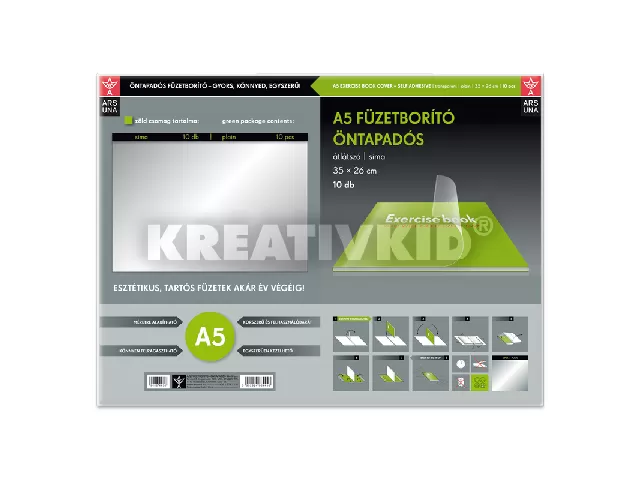 elé. Ars Una A/5 öntapadós füzetborító segít a füzeteket sokáig jó állapotban megőrizni. Nagyon egyszerűen használható, könnyen felragasztható. Alsósoknak-felsősöknek