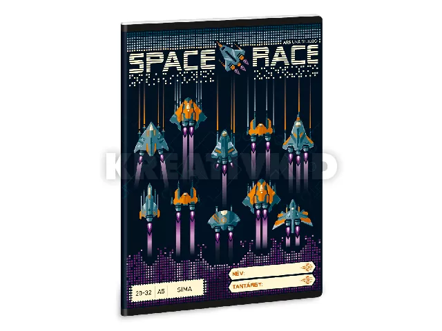 A/5-ös méretű, sima füzet. 32 lapos, belseje 75 gr-os papírból. Borítója 250 gr-os műnyomó kartonra lekerekített sarkokkal, fényes fóliázással, 4 szín nyomással készült.