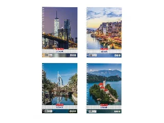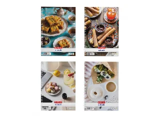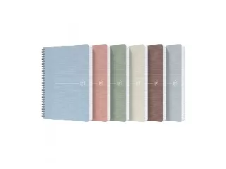 A4-es méretű 80 lapos vonalas spirálfüzet, 70g/m2-es famentes belívvel, margóval, lyukaszott és perforált lapokkal, 5 minta vegyesen.