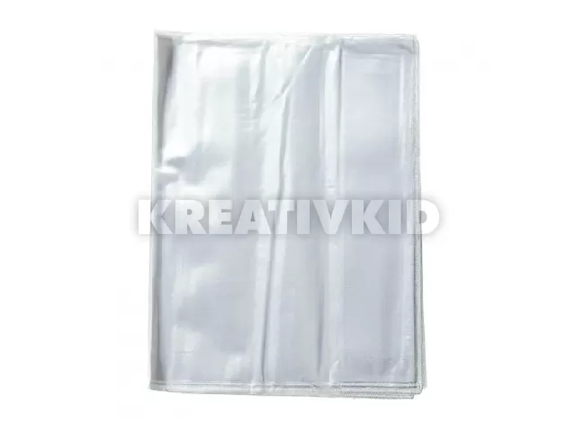 Spirálfüzet- és tartós tankönyvborító, víztiszta, színtelen, 90 mikronos PVC anyagból, mérete: 295x426 mm. 10 db/csomag.