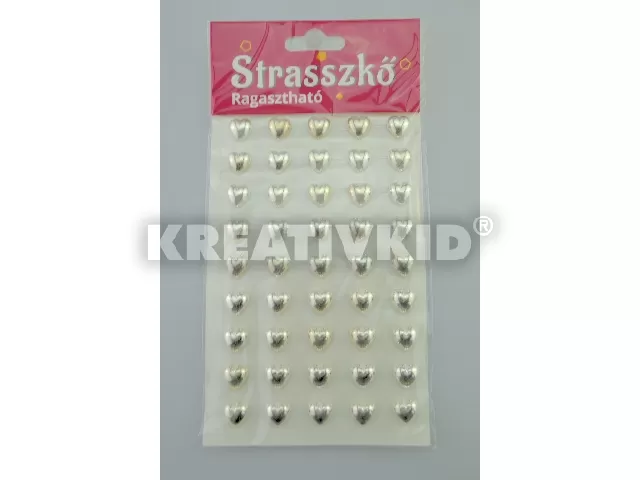 Strasszkövek ezüst szívecske 45 db/ív kicsi ragasztós 0,3x1,2x1,2cm