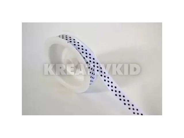 Szalag szatén pöttyös 1 cm széles 2méter/tekercs fehér/fekete