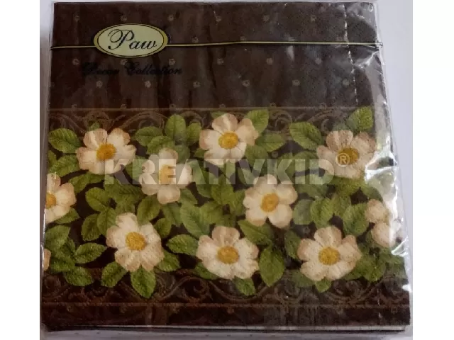 Szalvéta Paw 20db/cs 33x33cm 3 retegű Fehér virágok barna háttérrel