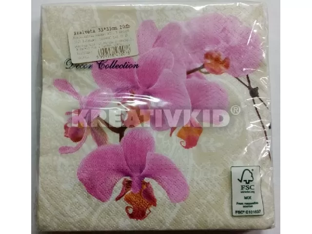 Szalvéta 33x33cm 20db/csom 3 rétegű PAW Rózsaszín orchidea