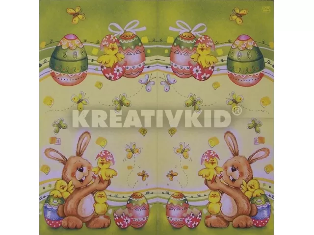 Szalvéta Daisy 20db/cs 33x33cm 3 rétegű Nyuszi csibékkel tojásokkal