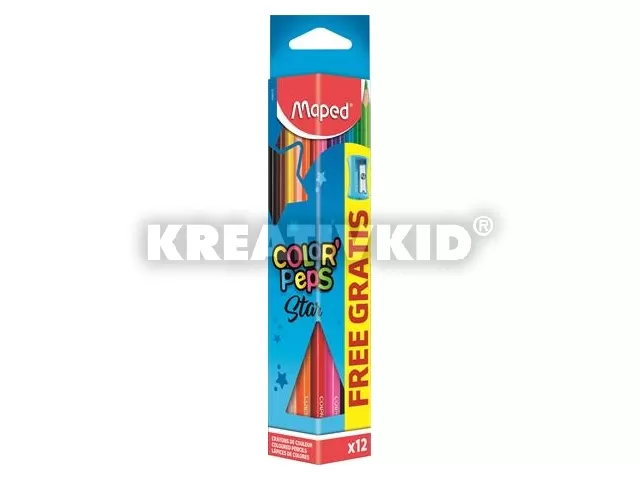 Színes ceruza készlet 12db-os - háromszögletű ajándék hegyezővel
