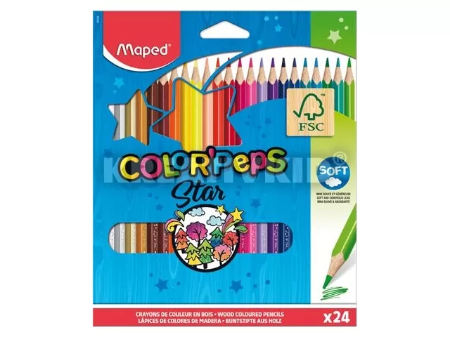 Színes ceruza készlet, háromszögletű, MAPED "Color`Peps", 24 különböző szín